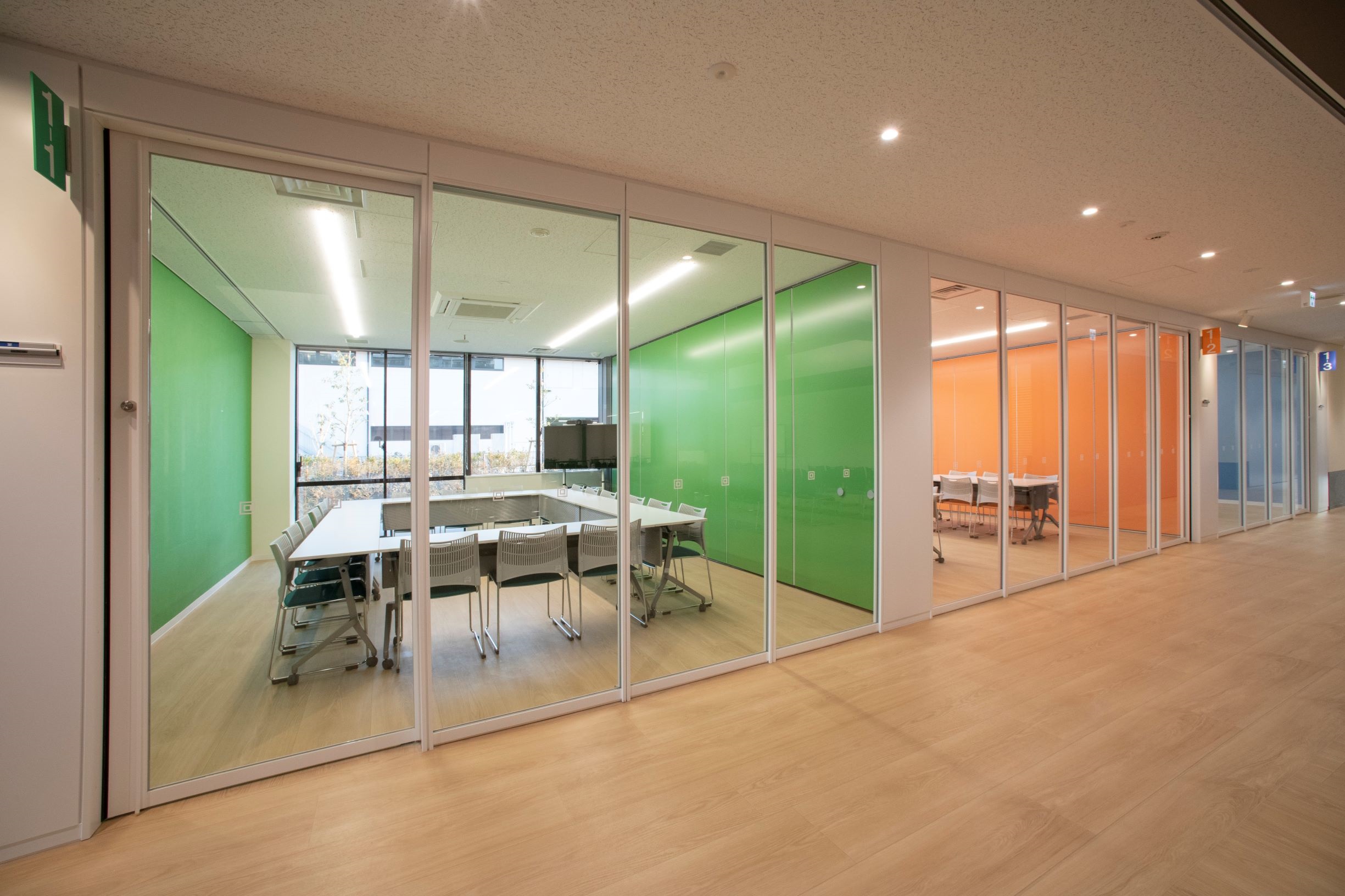 グループワークやイベントなどに最適です。ホワイトボードで仕切られており、ホワイトボードを移動することで広い1つの空間として利用することが可能です。