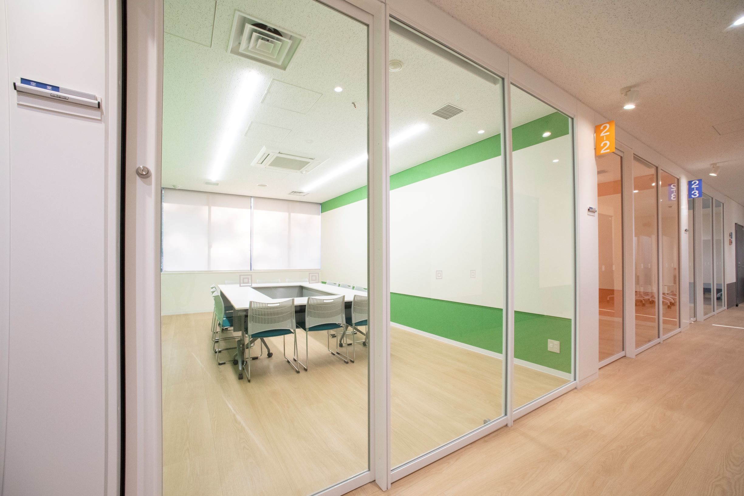 小規模なゼミやミーティングなどに最適です。可動間仕切りは移動することができるので、隣り合う2部屋を1部屋にしたり3部屋全てを1部屋にしたりと、利用人数や用途に合わせた広さに変えて利用することも可能です。