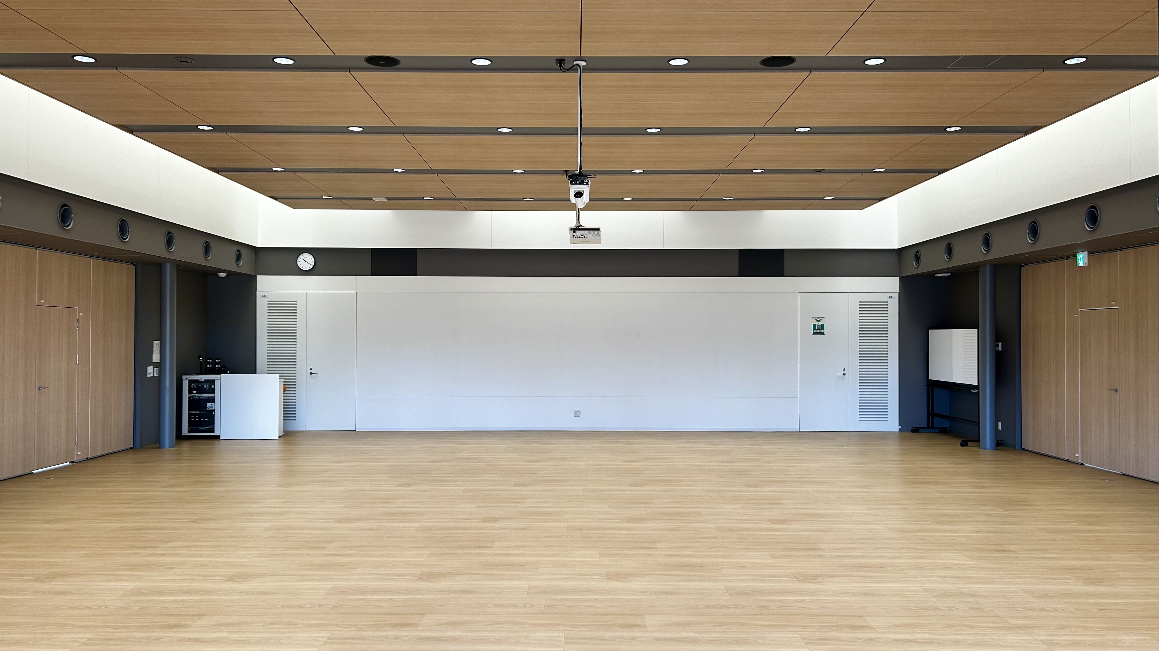 大規模なセミナー・イベントなどに最適です。AVワゴン、HDカメラ、レーザー光源液晶プロジェクターが常設されており、壁に投影することができます。また、左右の可動式間仕切りは開閉することが可能で、全て収納して開放的な空間としてご利用いただくこともできます。