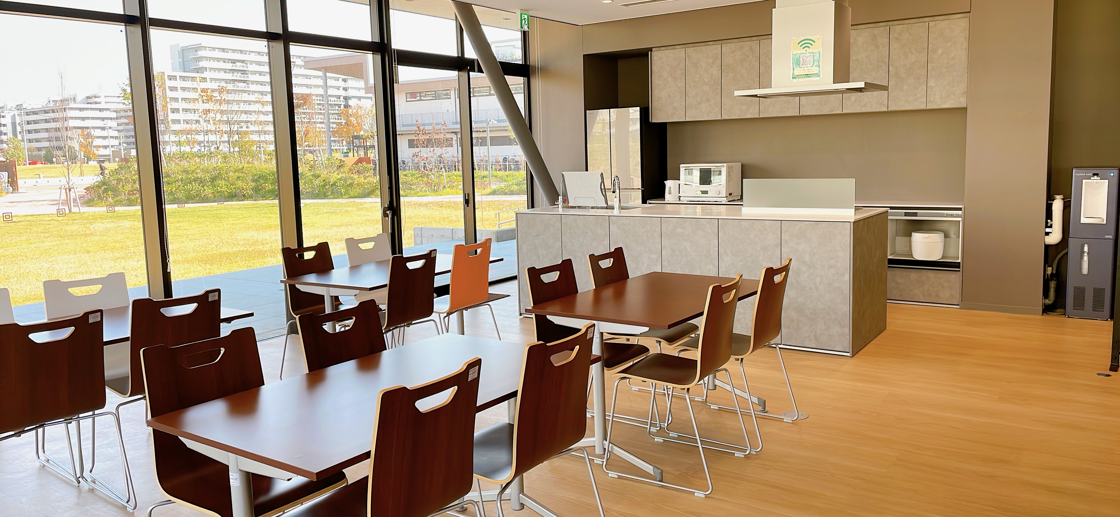 カフェ風のキッチンを備えたスペースです。調理器具や食器なども備えており、料理することが可能です。