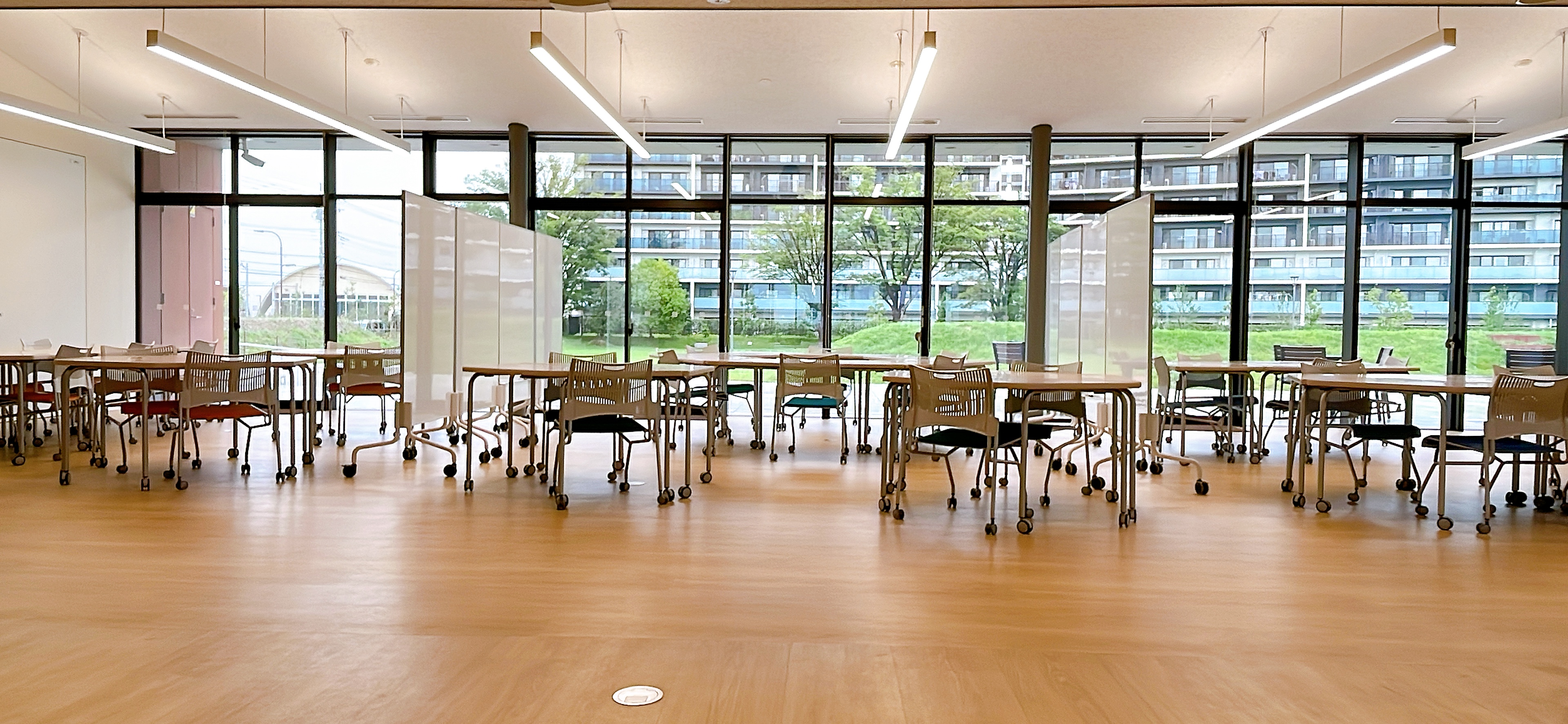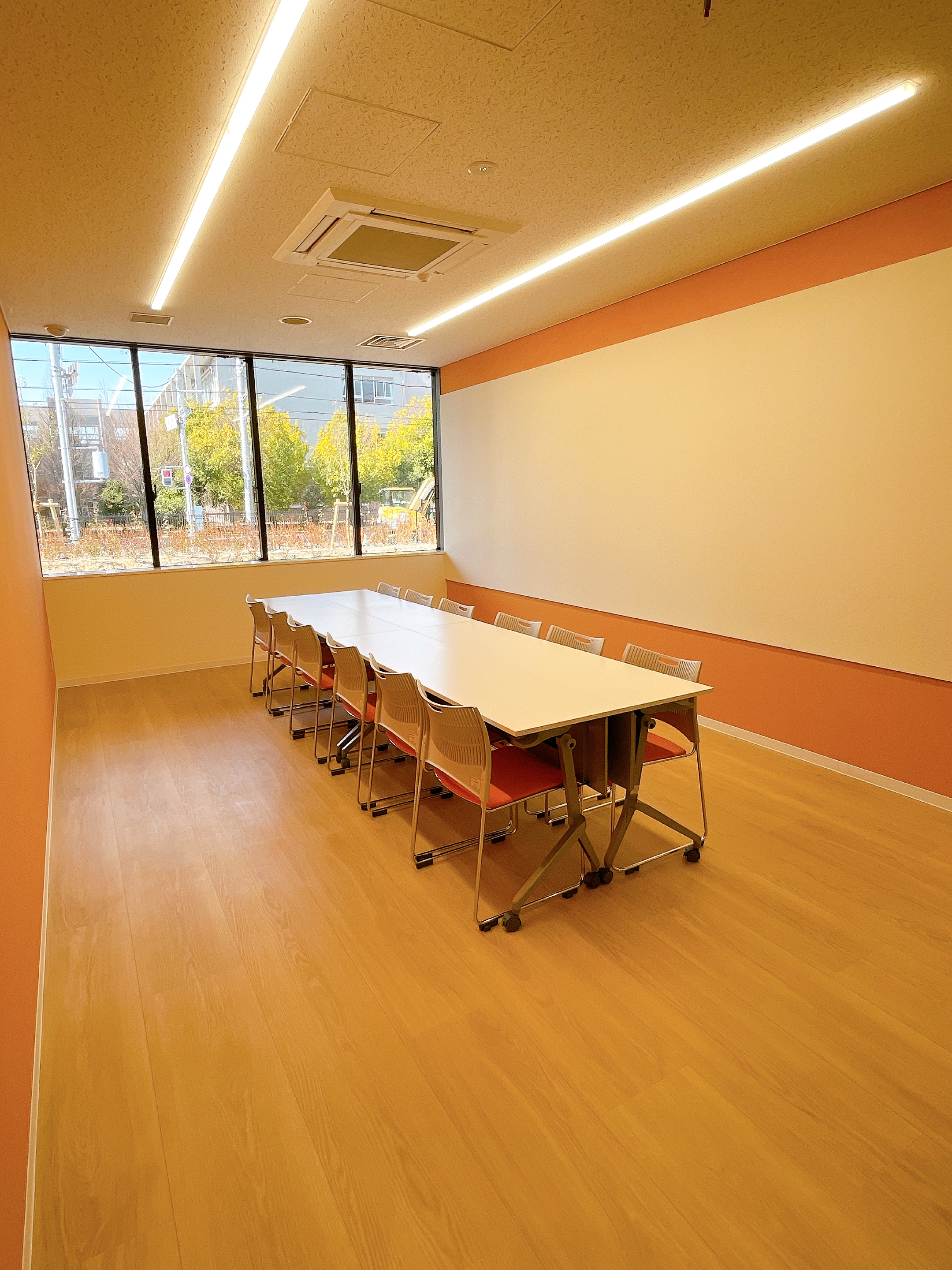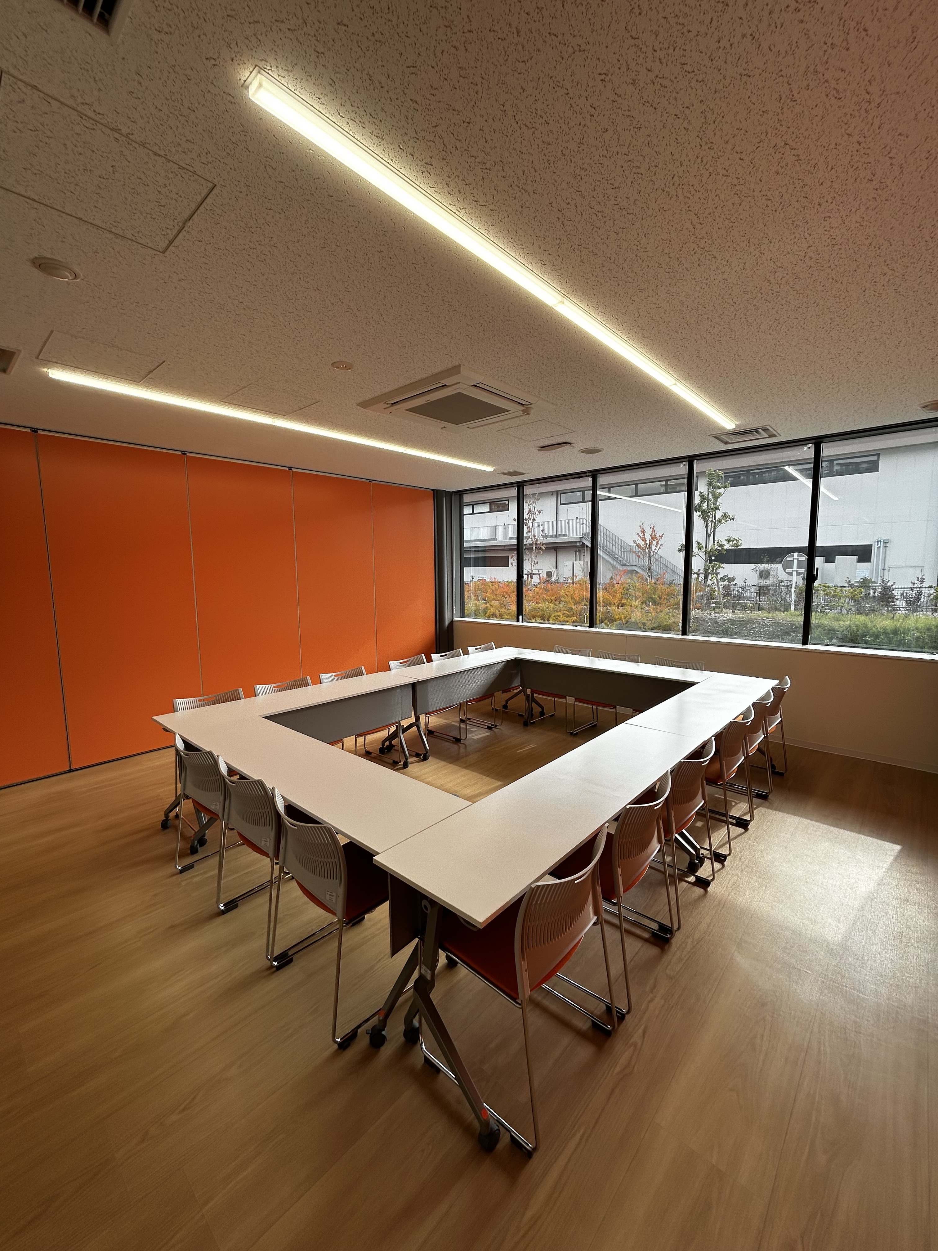 ホワイトボードで仕切られており、ホワイトボードを移動することで広い1つの空間として利用することが可能です。 -